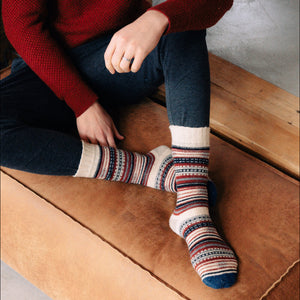 どなたにでも北欧の魅力を味わっていただけるよう、Mountain Collectionではユニセックスのソックスをご用意。北欧ならではのユニークな配色と時代に左右されないノルディック柄は、性別やスタイルを問わずあらゆるシーンで活躍することまちがいなし。