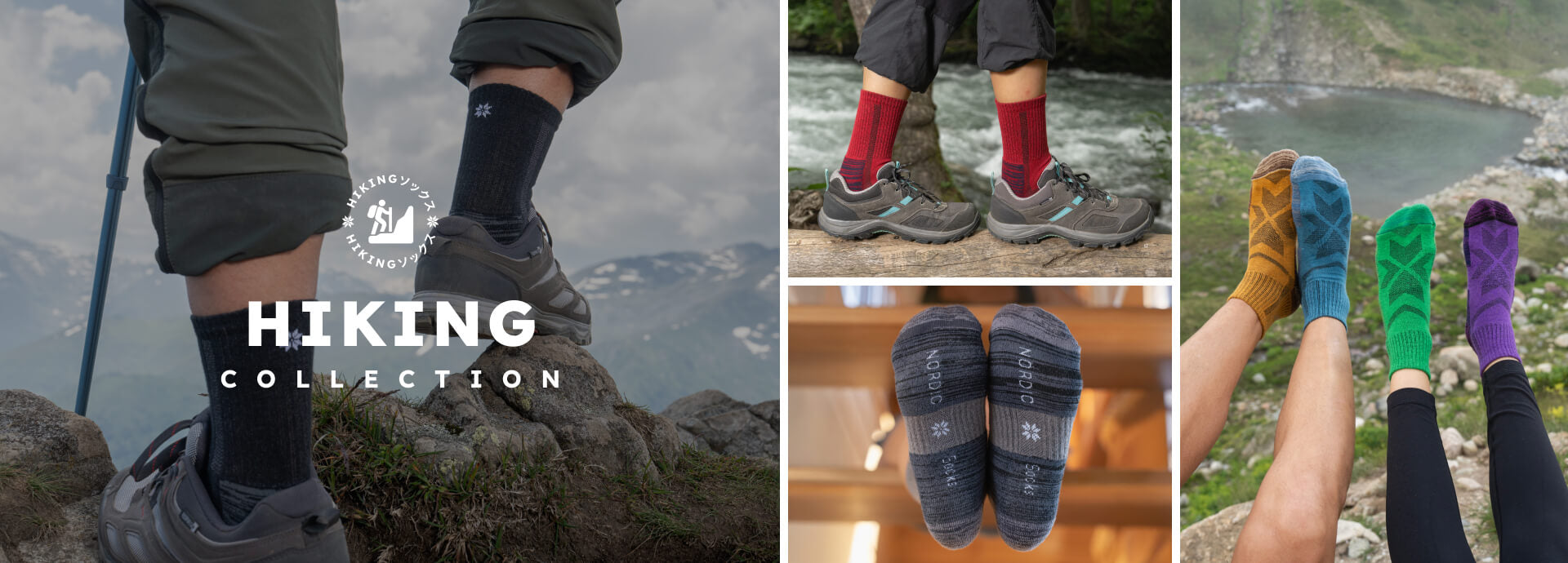 Nordic Socksのショートソックスは、ちょうどくるぶしの上くらいの丈です。ちょうど靴の上から見えるか見えないかくらいの長さでミニマルな存在感が特徴です。長いソックスを着用するのが暑く感じる夏場のハイキングに最適です。