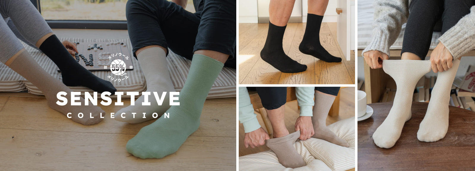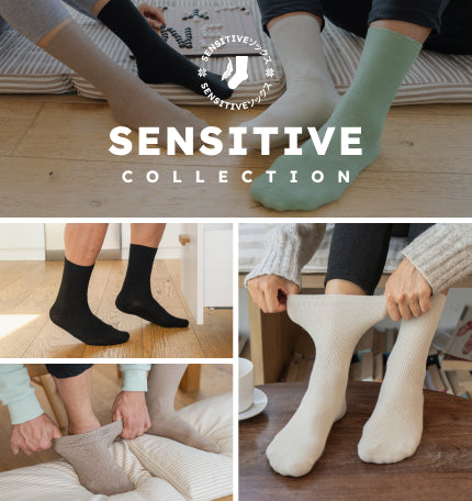 Nordic SocksのSensitiveソックスは、ふくらはぎ真ん中あたりまでの長さが特徴。日常使いのフットウェアにはもちろん、矯正シューズにも対応。締め付けを感じさせることなく、足を優しくサポートします。